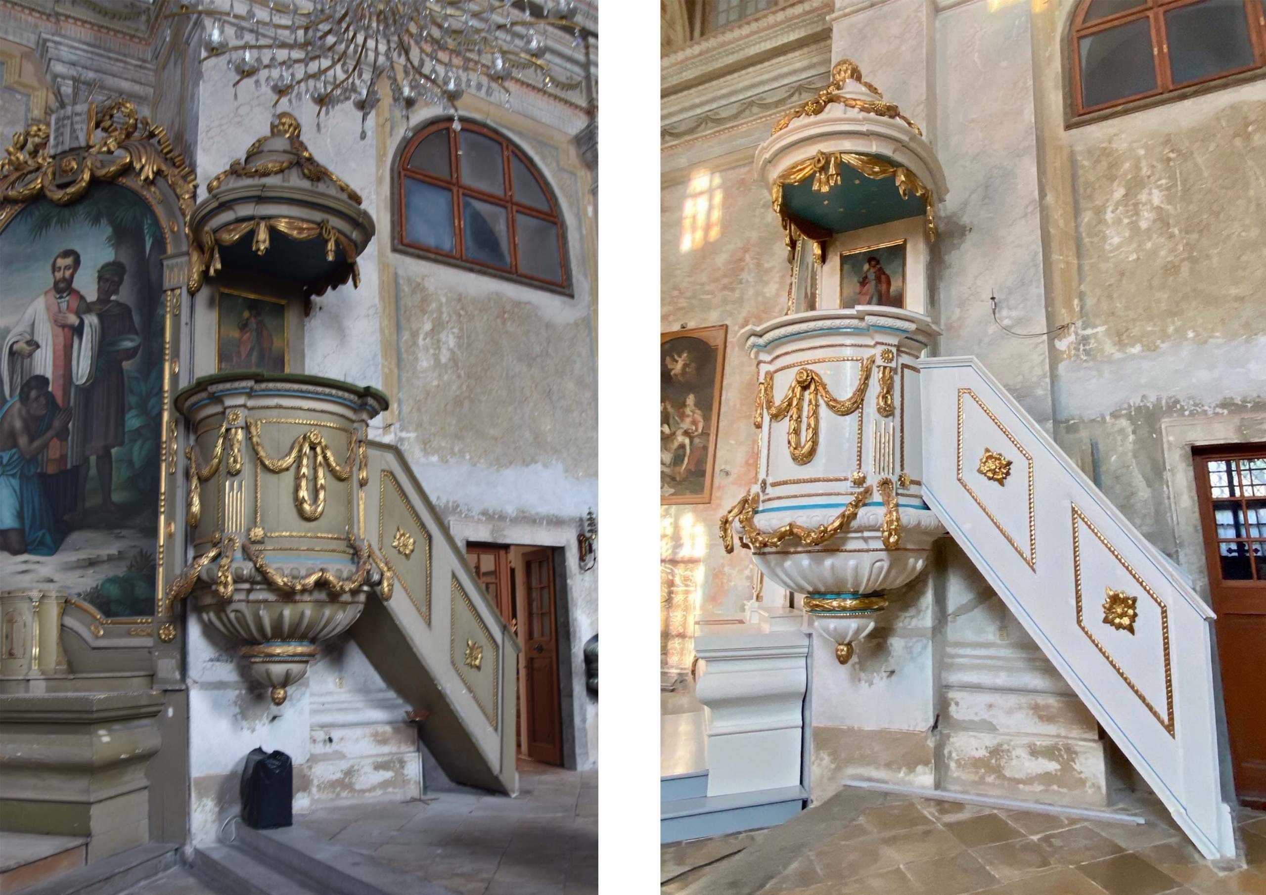 Propovedaonica, centralni liturgijski element namenjen obraćanju vernicima, zahtevala je sveobuhvatne radove čišćenja, konsolidacije, rekonstrukcije nedostajućih delova i zaštite originalne površine.
